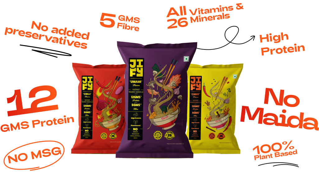 Jify Variety Pack of 10 – All 5 Flavours | 100% Plant-Based High Protein Ramen & NO MAIDA